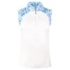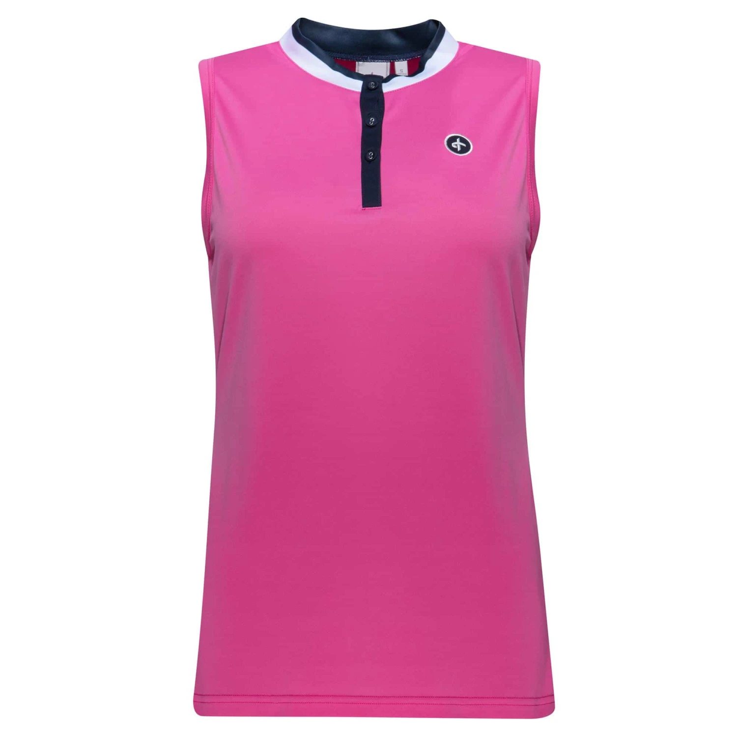Cross Sally sleeveless polo with a simple contrast round neck collar and neat 3 buttoned packet . Sporty technical polo made in recycled polyester and eco-friendly white bamboo charcoal with natural anti odor effects that keeps your body cool and dry.