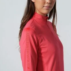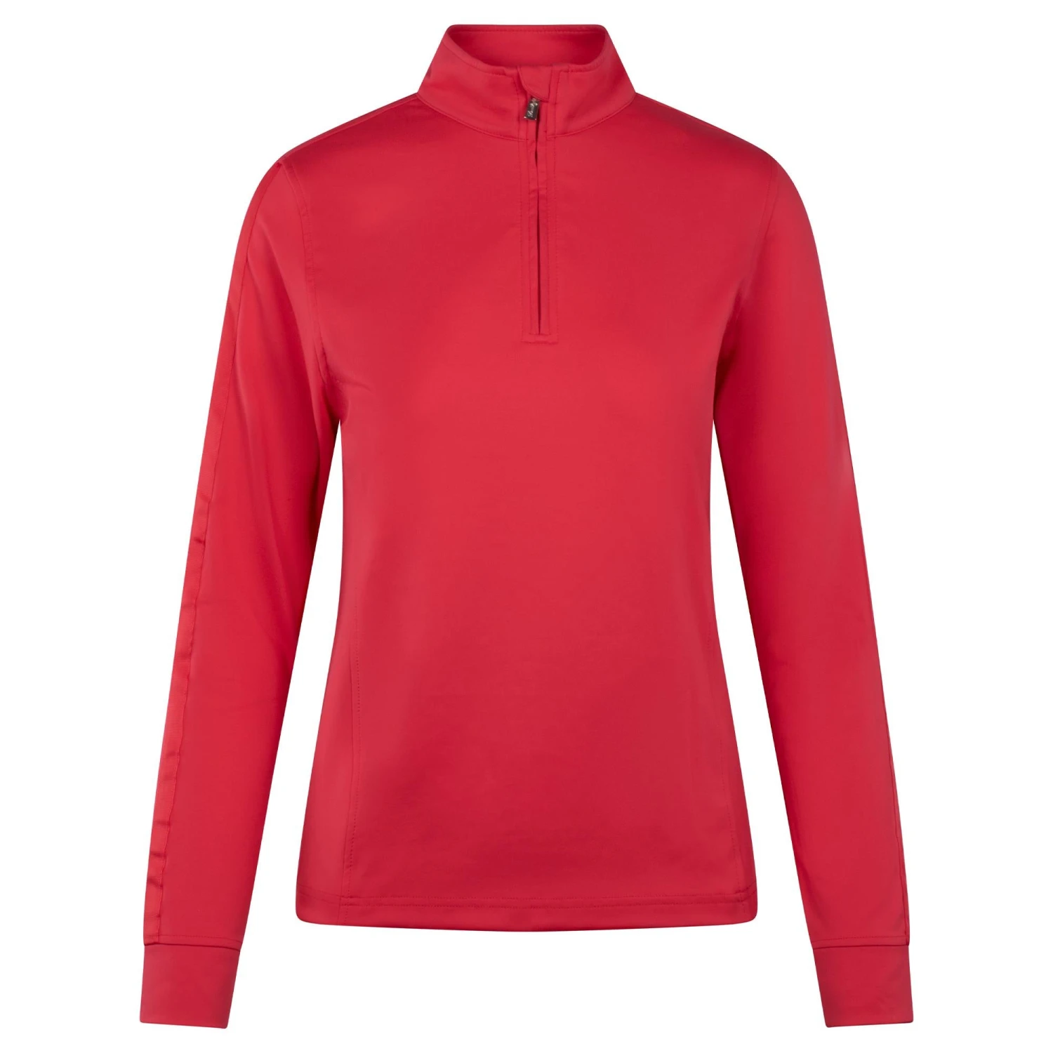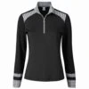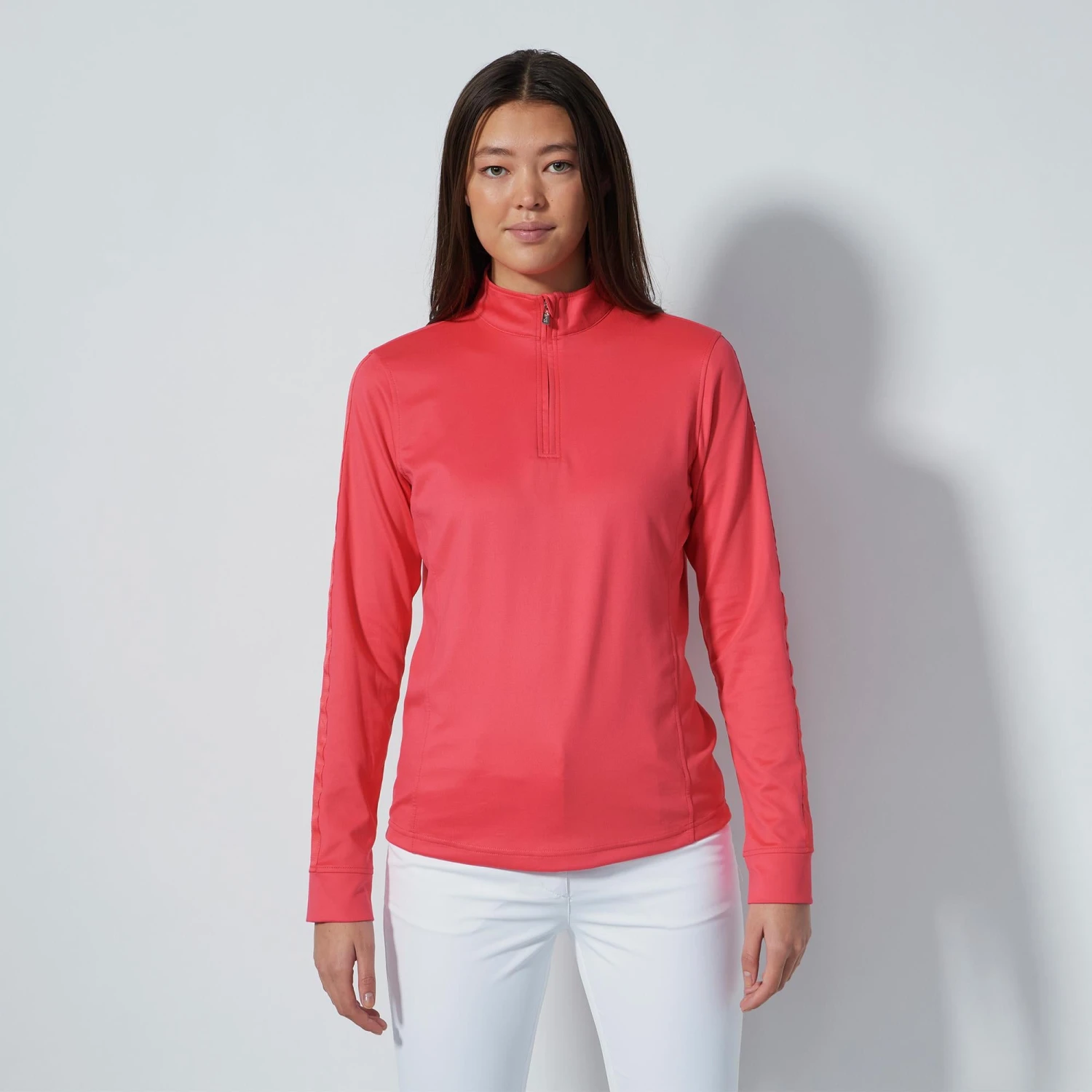 The Anna is a long-sleeved mid layer from Daily Sports which features well-thought-out details, making it a versatile layering piece that can be worn as a midlayer in cooler conditions or a polo in the summer. Featuring a stylish design with a stand-up collar and matching grosgrain ribbon stripes down the sleeves, the soft, brushed lining of the Anna will help to keep the wearer warm yet is also moisture-wicking. With additional styling provided by the metallic Daily Sports logo at the left sleeve, the Anna is sure to become a key element in any lady golfers wardrobe all year round.