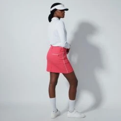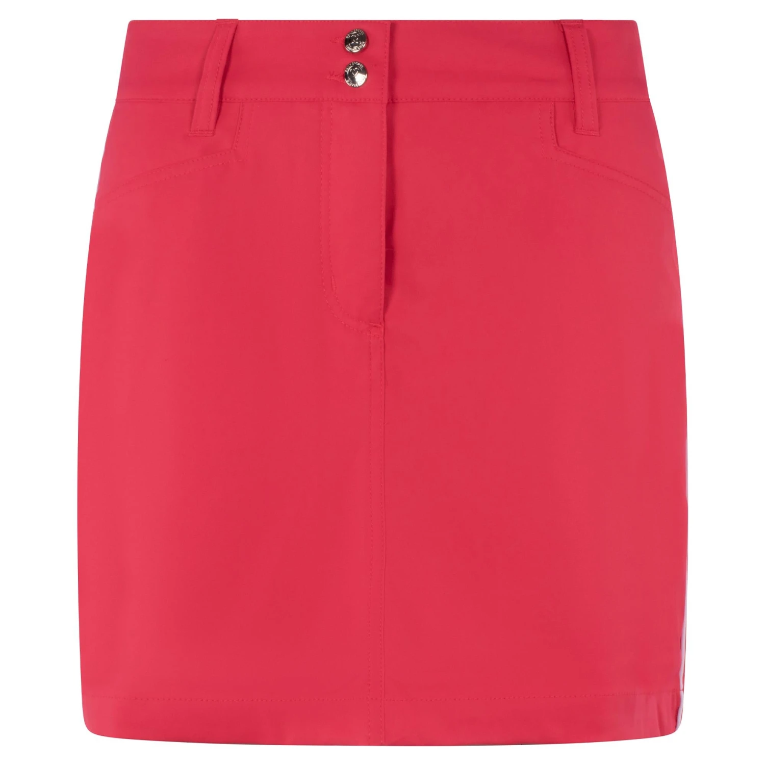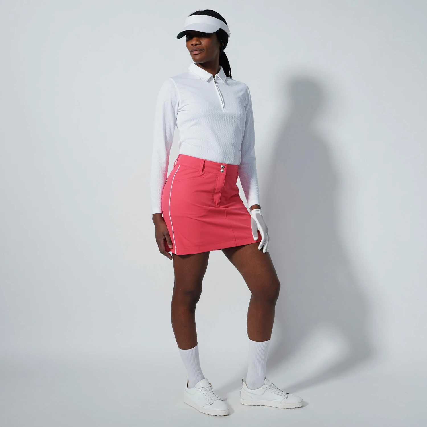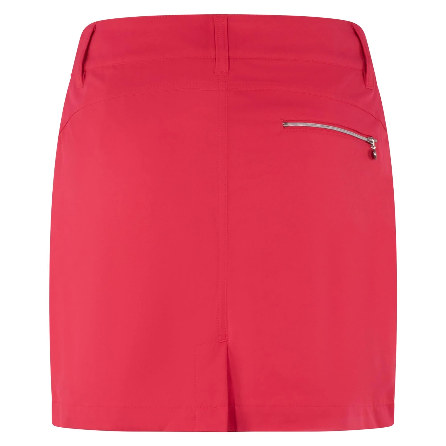 The Daily Sports Glam Skort is a classic skort that forms a key part of any look, all year round thanks to its versatility and signature contrasting silver piping along the side-seams which provide an eye-catching look. The stylish Glam skort is crafted from stretch fabric that includes wind-resistant, quick-dry and wrinkle-free among its many attributes. Also featuring two straight front pockets and 2 zipped back pockets, all with branded Daily Sports zippers, that guarantee functionality. This versatile skort pairs easily with Daily Sports ladies polo or mid layer to form an eye-catching, go-to look for both on and off the golf course this season.