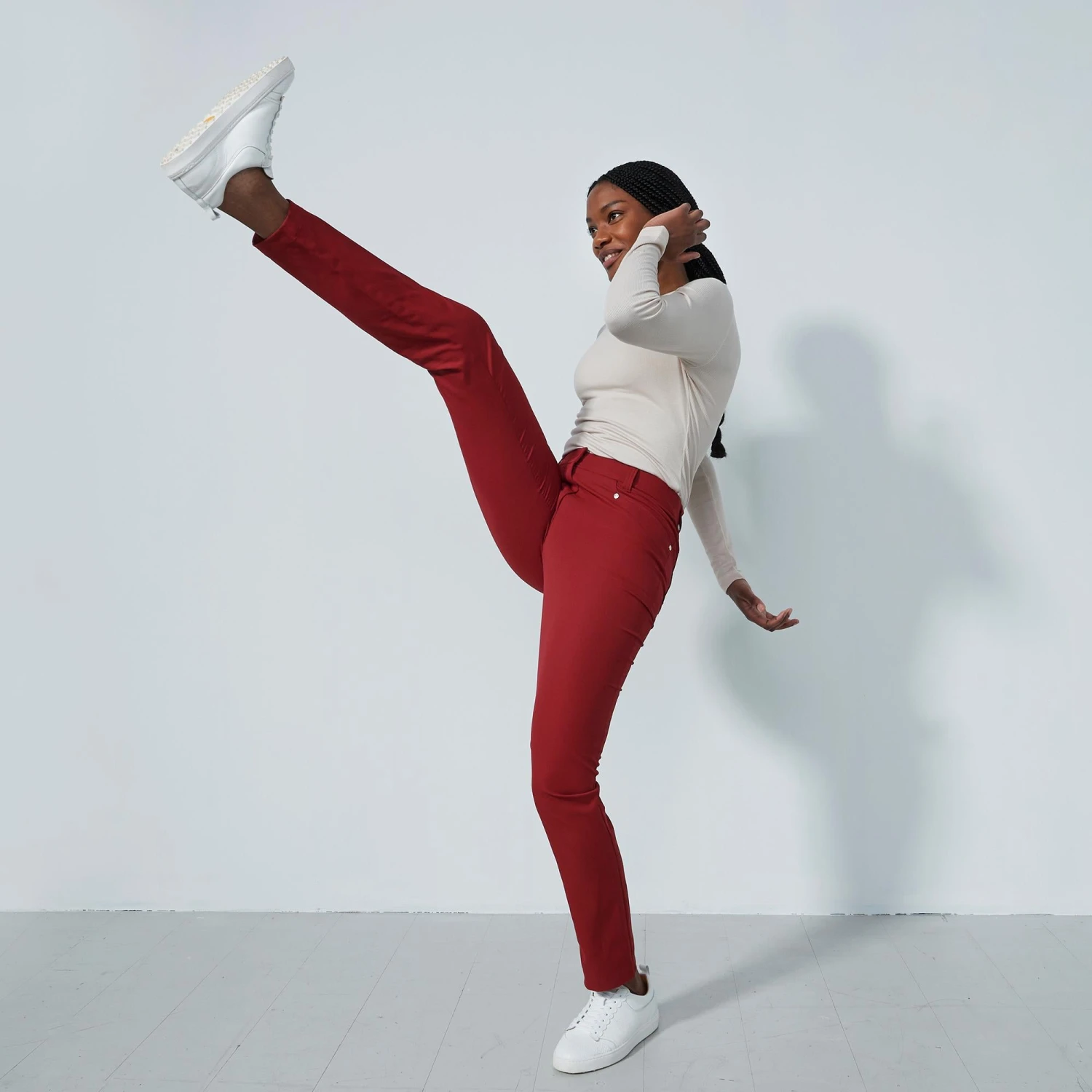Now you no longer have to choose between style and comfort – The Daily Sports Lyric golf trousers are both smart & comfortable in equal measure. The elastic waistband and the soft, stretch fabric mean these pants are equally at home off the golf course. Crafted from a fabric that is both wind and water-repellent the Lyric trousers also dry quickly and stay wrinkle-free. Luxurious comfort comes as standard from these versatile must-have pants that guarantee to become a year-round wardrobe staple irrespective of the conditions!