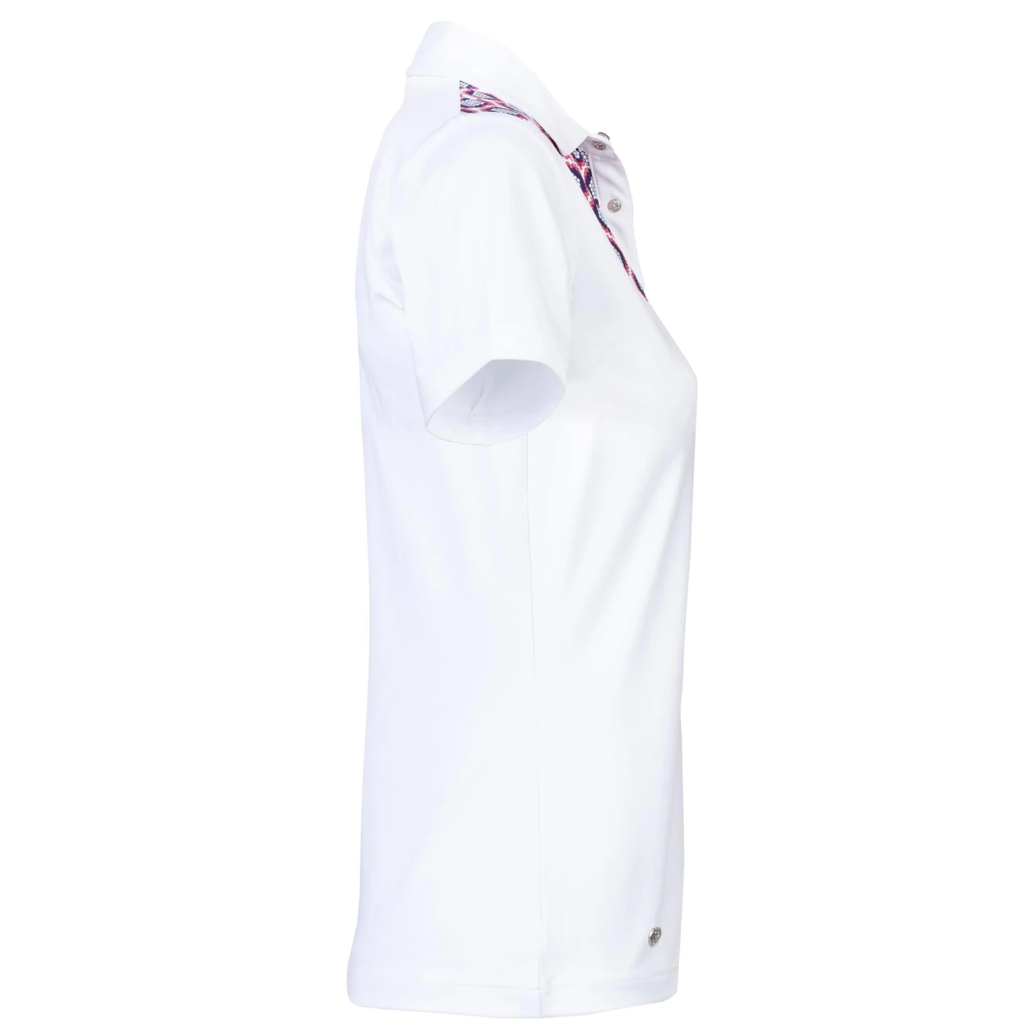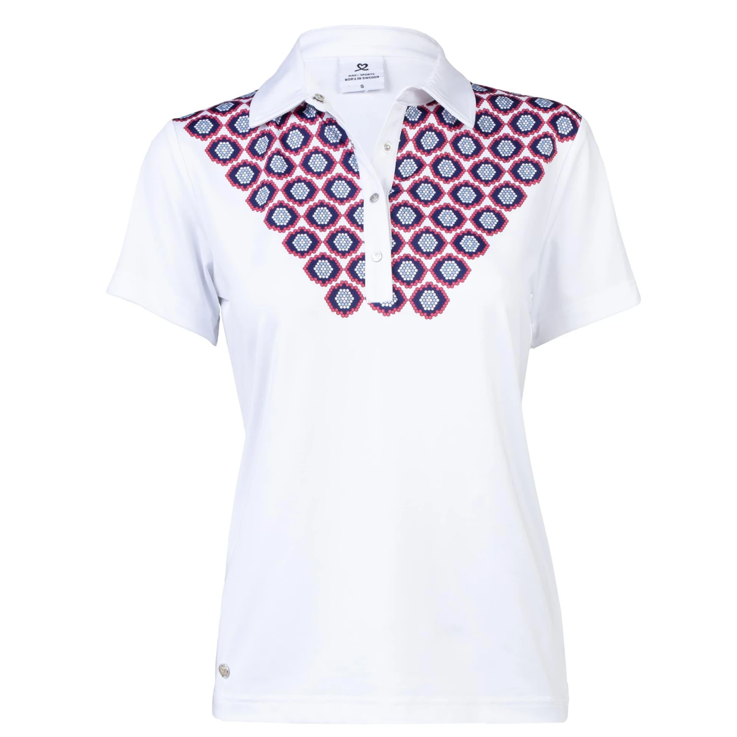 Daily Sports Moa SS Ladies Golf Polo Shirt is a short-sleeved piqué golf top made of a stretchy fabric with a graphic print across the chest. The quick-drying fabric keeps you cool and dry throughout your entire round of golf. • Short sleeve length about 18 cm • Stretchy quality • Quick-drying Quick Dry material • Graphic print front • Buttons front
