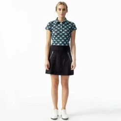Gorgeous Slim Fit Palmeira short sleeved polo with an elegant art deco inspired mesh print. The stretch mesh fabric fits everywhere it should offering an elegant feminine silhouette for on the golf course. The breathable quick-drying fabric keeps you cool and gives you freedom of movement
