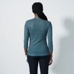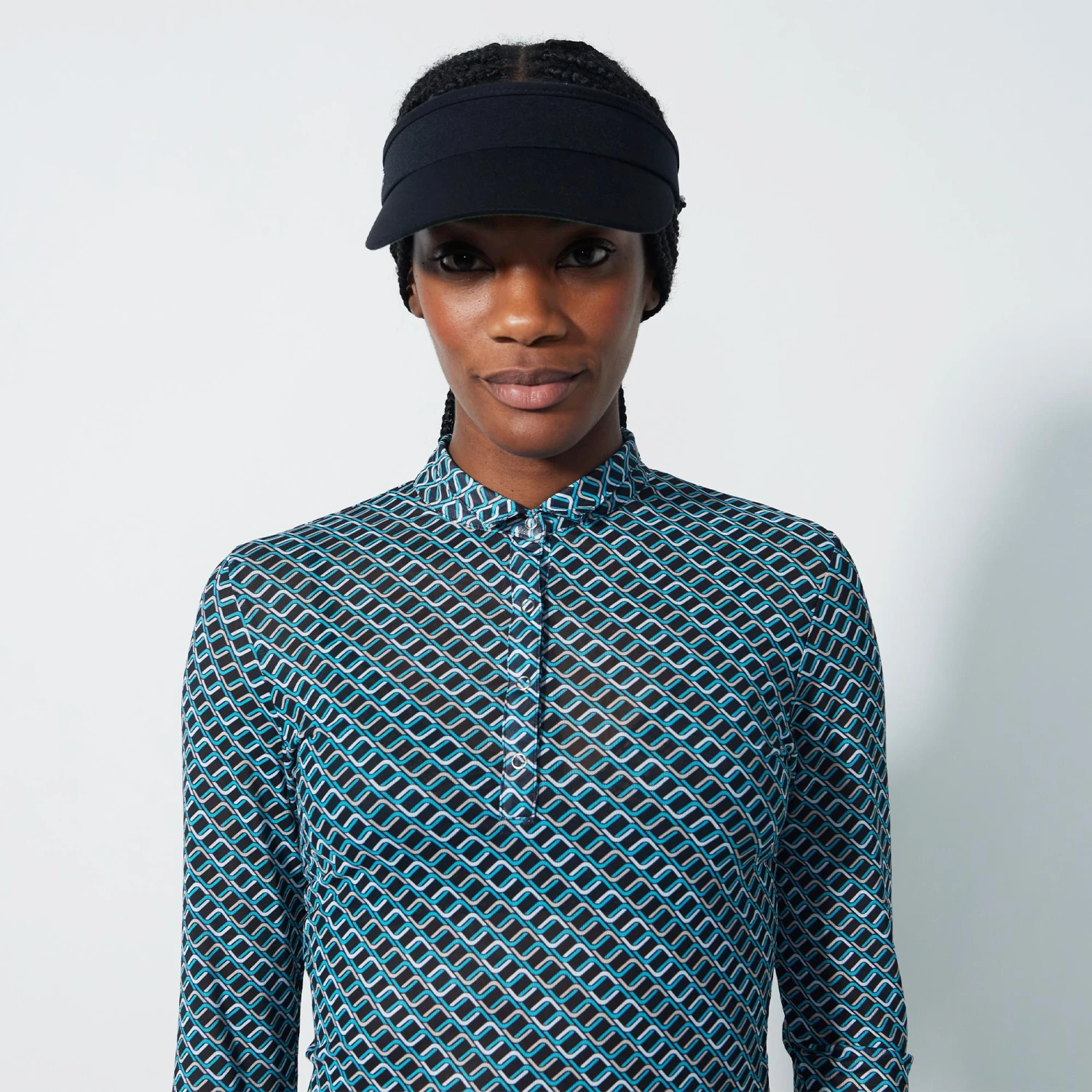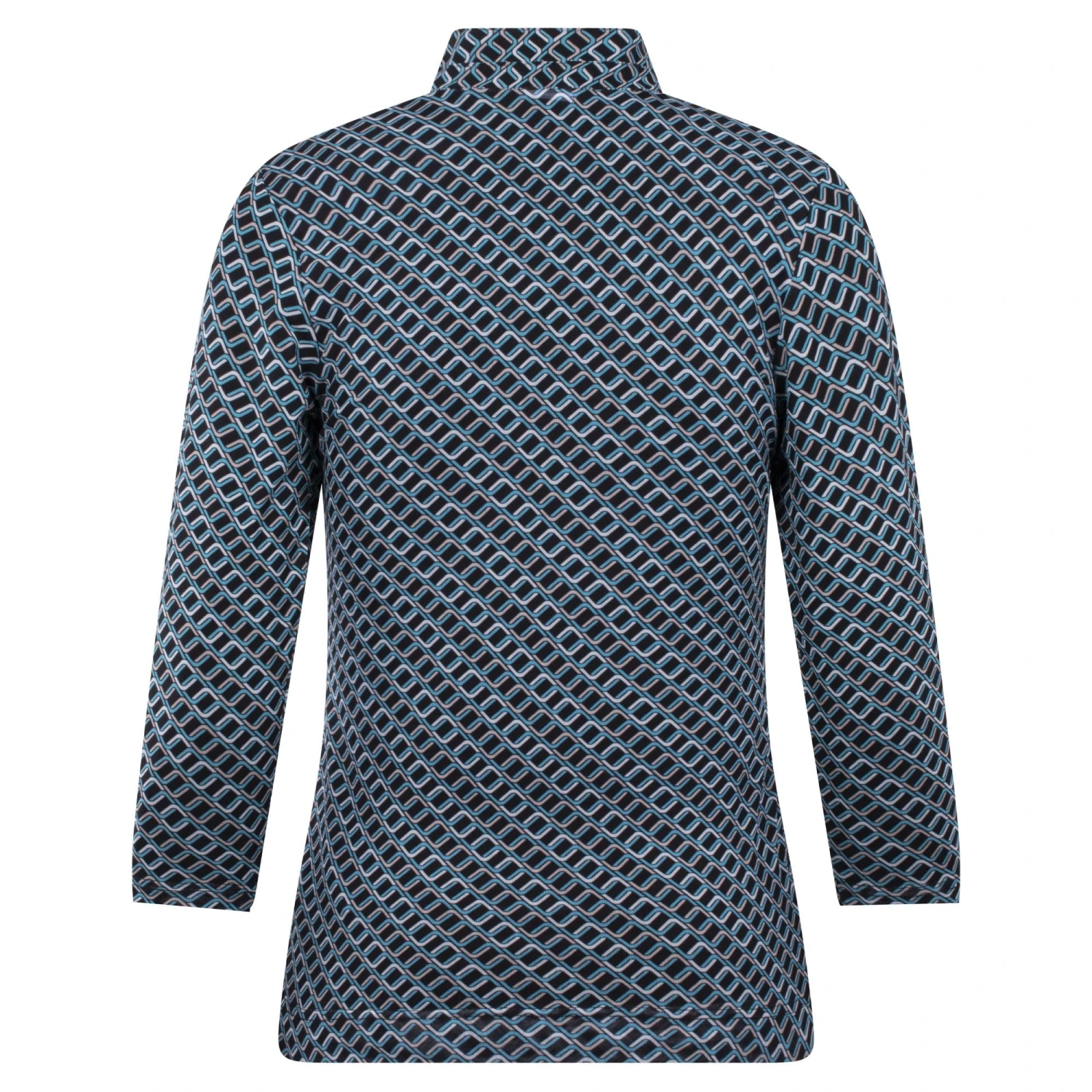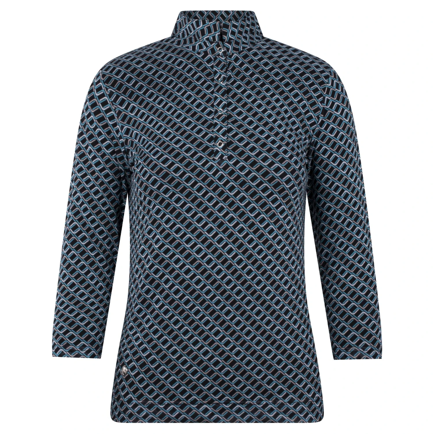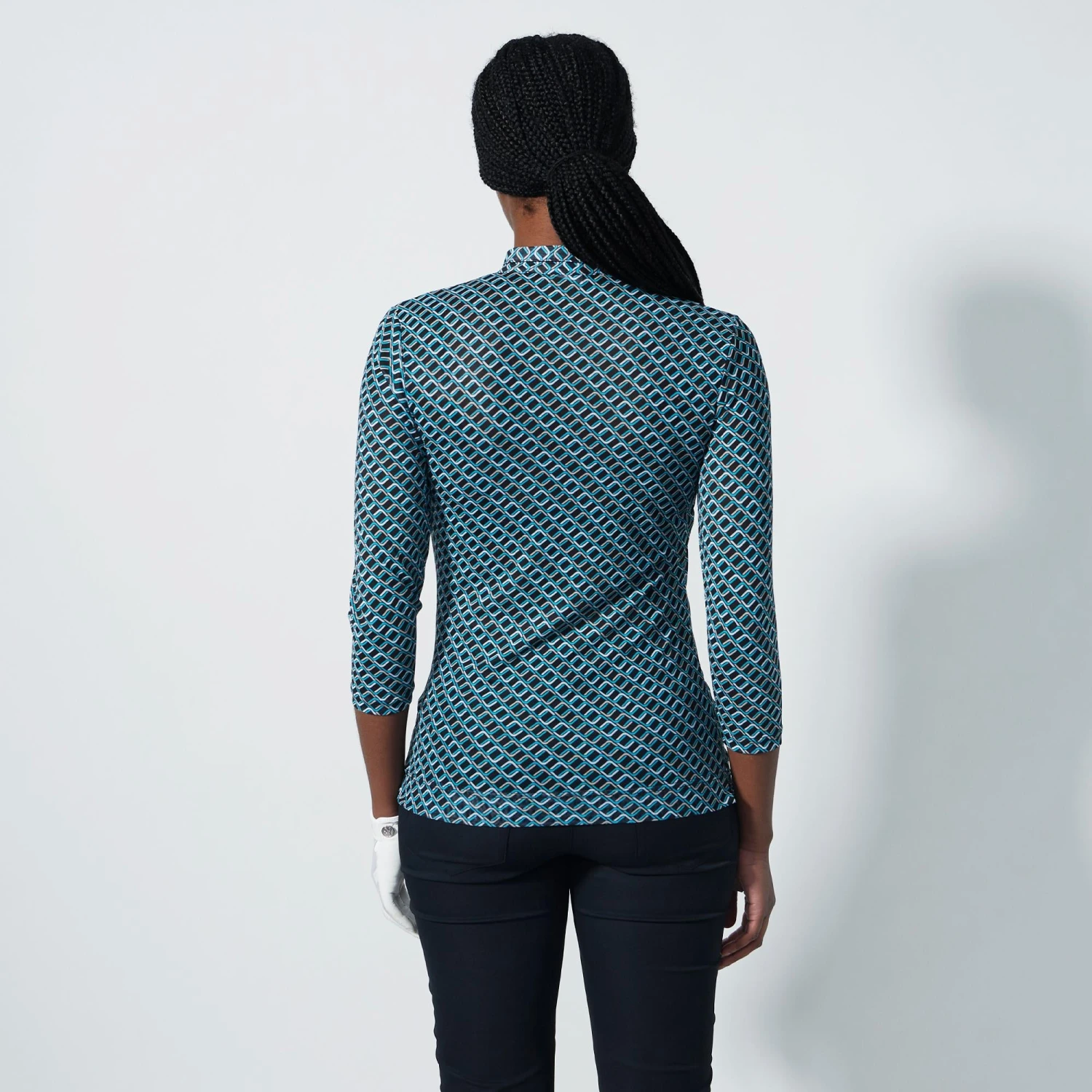 The Valente is a ¾ length sleeved polo that has been constructed from a mesh material with a stylish all-over pattern of geometric shapes in black and turquoise. The Valente is cut in a slim fit and features a collar with press studs. The stretchy mesh fabric allows moisture to evaporate and dries quickly, providing a cooling effect, perfect for warmer days both on the course or when worn casually. This versatile polo can be easily paired with other elements from the Daily Sports Geo Tribe collection to complete an eye-catching look for this season.