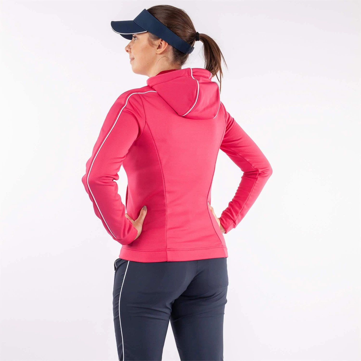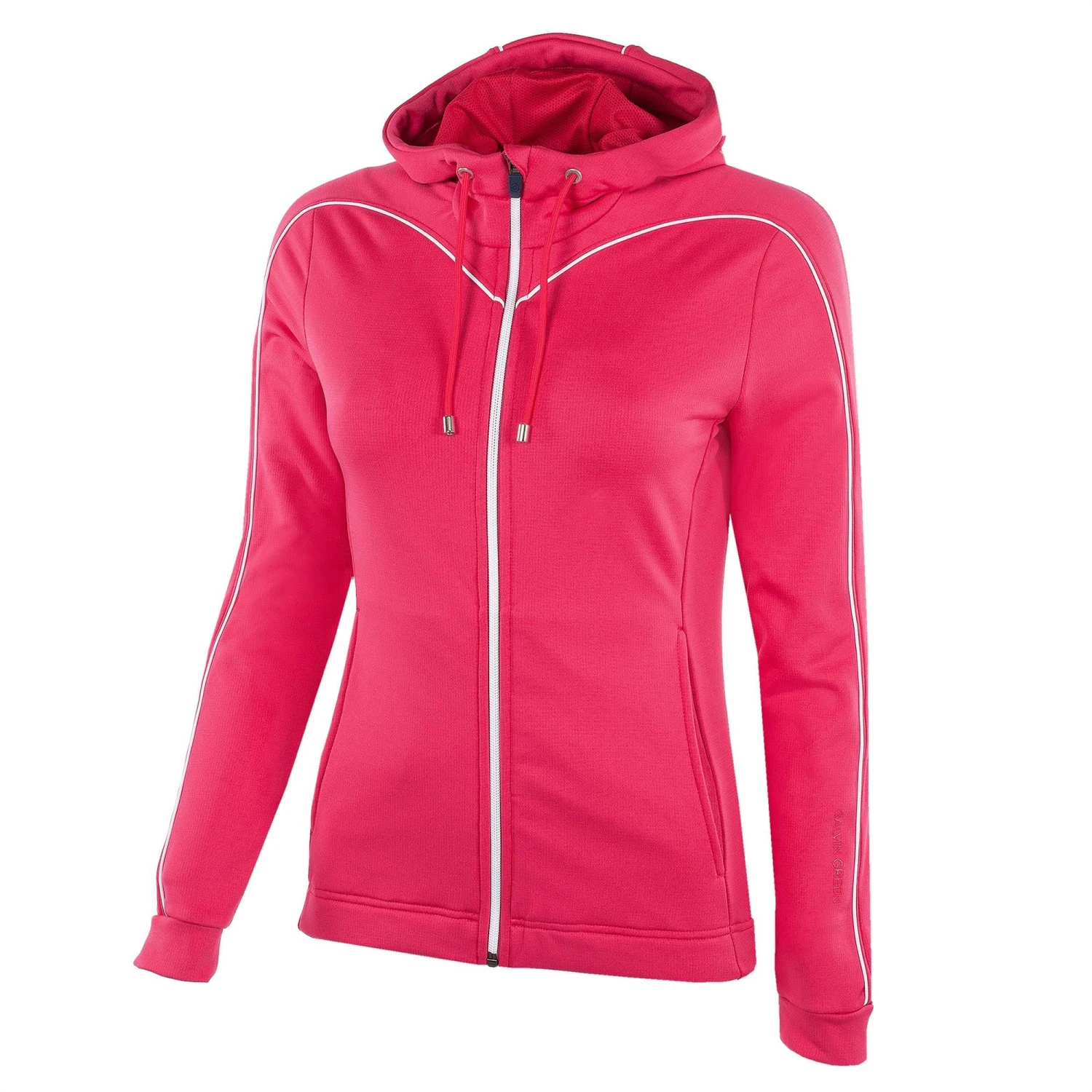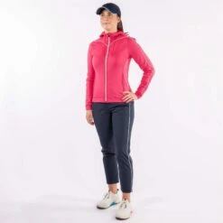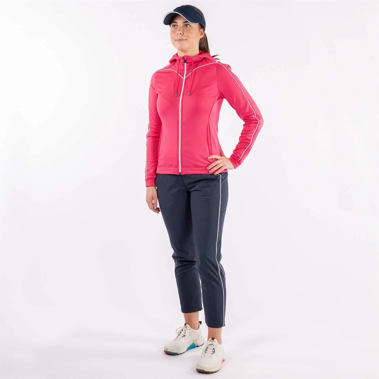 The Galvin Green Donna women’s golf hoodie is crafted from INSULA™ stretch fabric. The Donna is guaranteed to provide exceptional warmth & comfort, while still being incredibly lightweight and breathable. Features include Two front pockets with zippers, whilst this garment belongs to a new eco-generation of INSULA™ fabric made 100% from recycled plastic bottles.