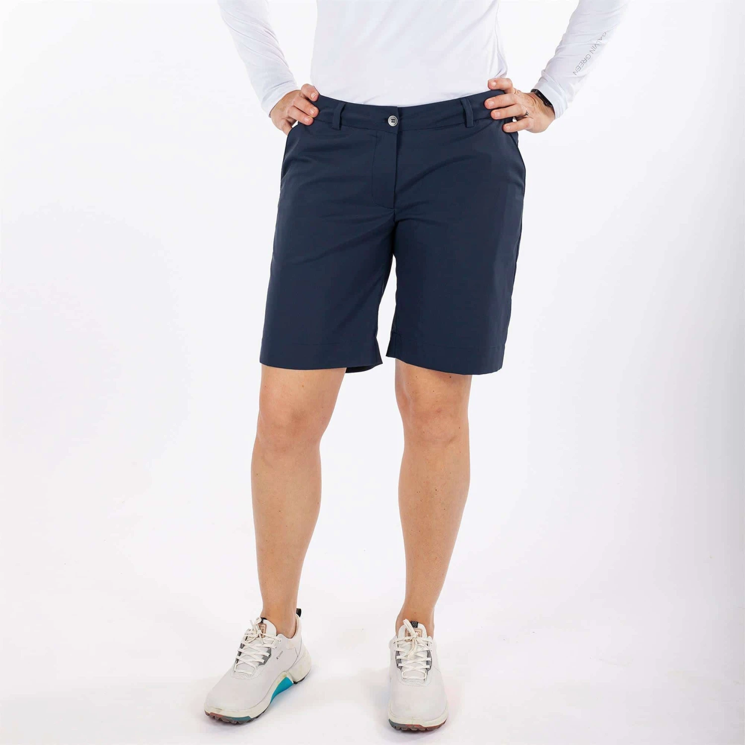 Sunny, warm golf weather calls for shorts – the Petra women’s golf shorts from Galvin Green are extremely breathable and made from a stretch fabric that ensures comfort and ease of movement. Light, soft, and comfortable, these women’s golf shorts have front and back pockets and a panelled zip fly. Metal buttons are embossed with the Galvin Green logo for additional detailing. Pair the Petra shorts with a polo shirt from the SS23 collection for hot look on a sunny day on the golf course – added cover is also provided by the UV20+ protection fabric.