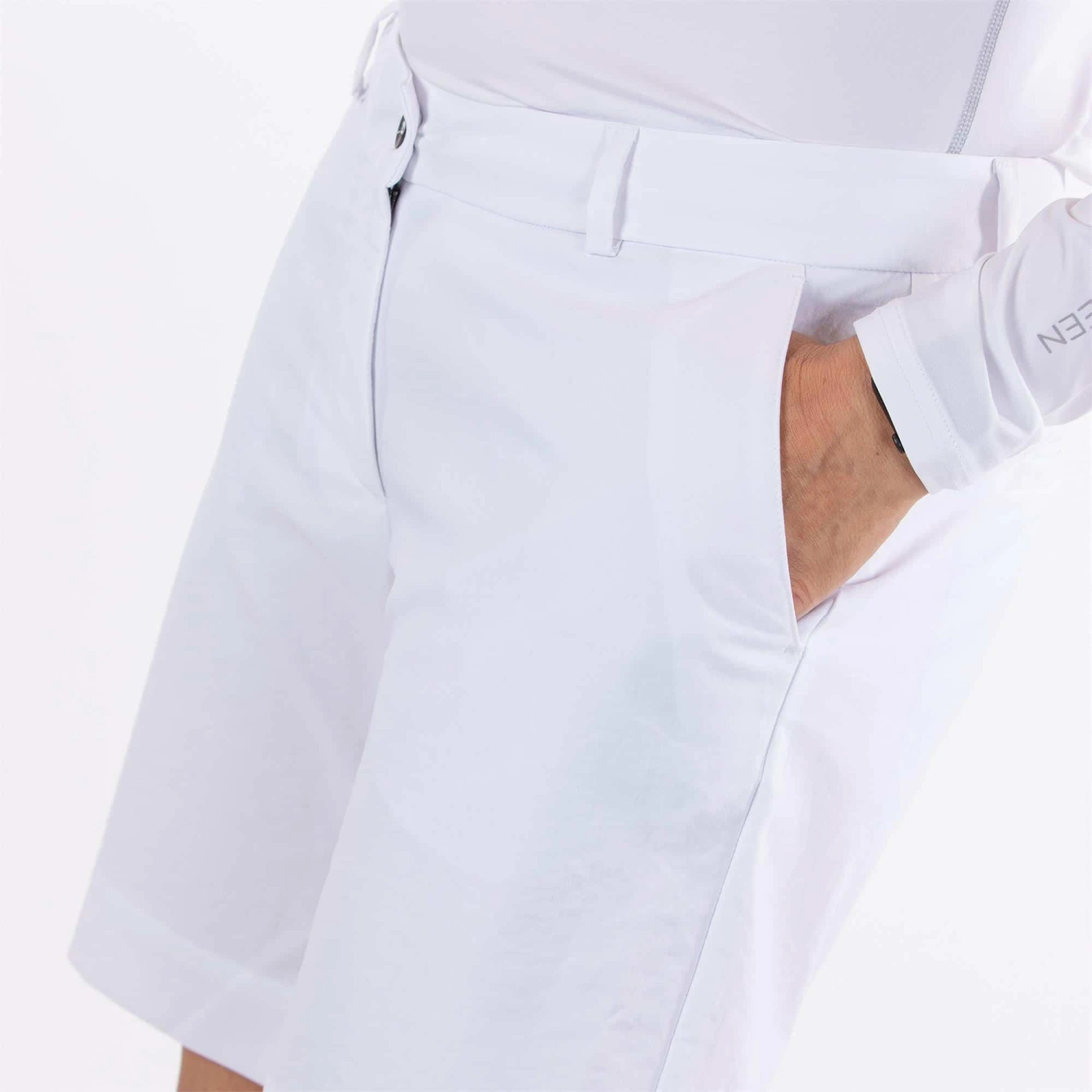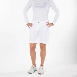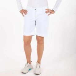 Sunny, warm golf weather calls for shorts – the Petra women’s golf shorts from Galvin Green are extremely breathable and made from a stretch fabric that ensures comfort and ease of movement. Light, soft, and comfortable, these women’s golf shorts have front and back pockets and a panelled zip fly. Metal buttons are embossed with the Galvin Green logo for additional detailing. Pair the Petra shorts with a polo shirt from the SS23 collection for hot look on a sunny day on the golf course – added cover is also provided by the UV20+ protection fabric.