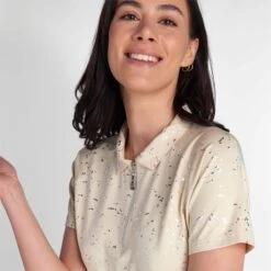 Green Lamb Katlynne Silver Foil Polo Shirt Stone
