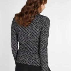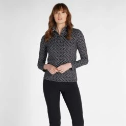 Green Lamb Kenza Jaquard Zip Neck Ladies Golf Top Black