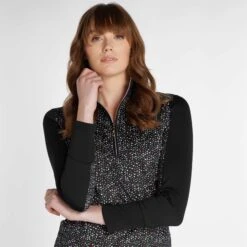 Withstand all conditions on the course in style this autumn/winter with Green Lamb’s Khloe Printed Zip Neck Top that elegantly combines plain and printed fabric panels for a flattering silhouette. The high performing stretch enhanced fabric has a soft fleece backing providing an insulating layer. Green Lamb Planet Luxury Fabric garments use recycled sustainable polyester.