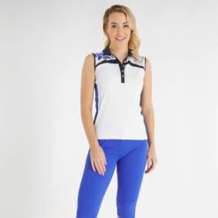 Sleek with a flattering silhouette the Mariah Polo from Green Lamb is a knockout both on and off the course. A mix of printed and plain fabric panels throughout and curved seams make for a dynamic looking polo. The quick dry performance jersey fabrication boasts UV protection (30+), and recycled polyester is the smart choice for you and the environment. Superior stretch fabric ensures both unrestricted freedom of movement as well as comfort with additional detailing provided by the Green Lamb logo and logo on the left front hem.