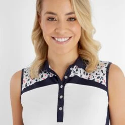 Sleek with a flattering silhouette the Mariah Polo from Green Lamb is a knockout both on and off the course. A mix of printed and plain fabric panels throughout and curved seams make for a dynamic looking polo. The quick dry performance jersey fabrication boasts UV protection (30+), and recycled polyester is the smart choice for you and the environment. Superior stretch fabric ensures both unrestricted freedom of movement as well as comfort with additional detailing provided by the Green Lamb logo and logo on the left front hem.