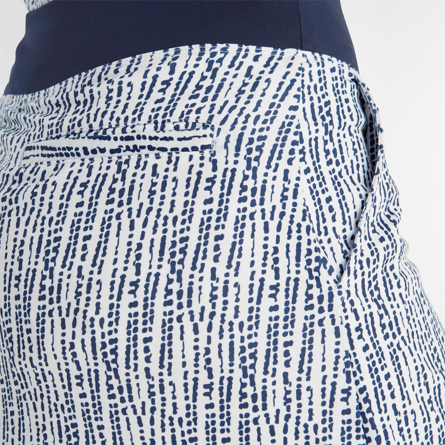 The eye-catching Melissa skort in Waterfall Print allows you to reach peak performance in spirited style with its statement print and super flattering curved wrap style. Functionality is provided by the two side entry pockets and one welted back pocket, whilst comfort is assured by the wide pull-on waistband and super stretchy inner shorts leaving you with peace of mind to focus on your game. The comfort provided by the Melissa skorts is further enhanced by the lightweight & breathable fabric which also offers UV protection (30+) making it the perfect summer skort, equally at home both on and off the golf course!