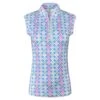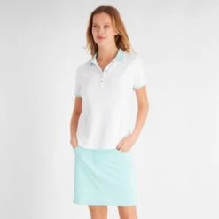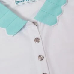 Adding a feminine edge to a classic ladies golf polo, the Nadeen from Green Lamb features a delicate needle out knitted collar with a scalloped edge for a distinctive aesthetic. Contrast tipping highlights the placket, collar and cuffs, whilst the silver stud logo at the left sleeve further elevates the detailing of this stylish polo. Crafted from a premium organic cotton blend fabric with added stretch in a soft pique weave, the versatile Nadeen polo guarantees comfort whether worn on or away from the golf course.