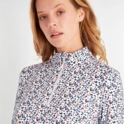 Featuring a distinctive multicoloured all-over seasonal print, the Nicola printed zip neck top is the perfect layering piece from Green Lamb is sure to add a splash of colour to any look. Crafted from a quick-dry performance jersey, this lightweight, breathable mid layer is sure to become a wardrobe favourite this season. The versatile Nicola can be worn as both a base layer or a mid-layer depending on the wearers preference, it has also been made from a recycled polyester fabric is the sustainable choice for the environment.