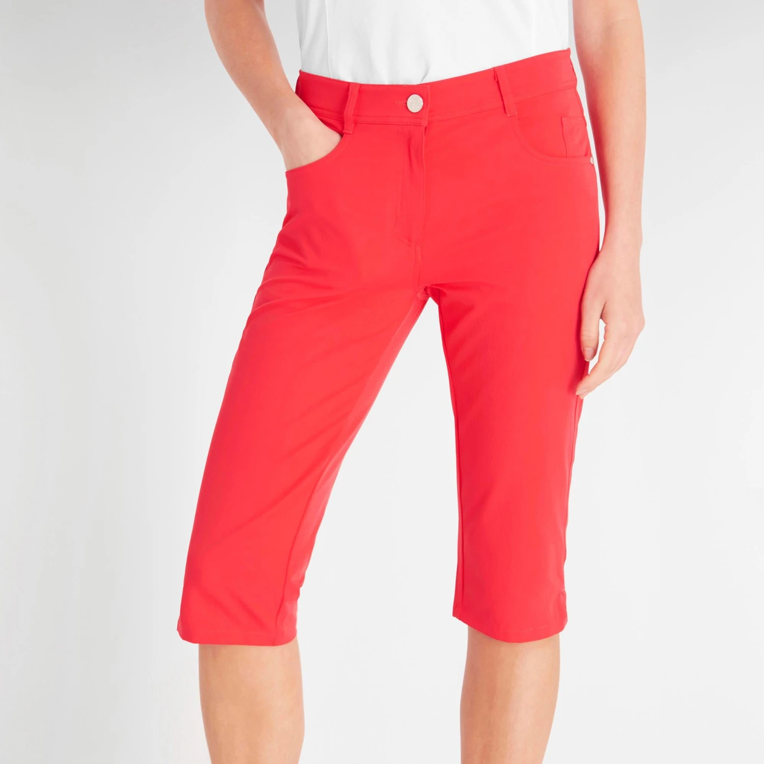 The Nuala are beautifully crafted pedal pushers which featuring silver metal logo rivets at both the front and the back, at the pockets and double belt loops. The front and back seaming creates a tailored shape for a great fit whether worn on or away from the golf course. Crafted from a soft stretchy fabric which allows for enhanced freedom of movement, the Nuala are sure to become a wardrobe favourite this season.
