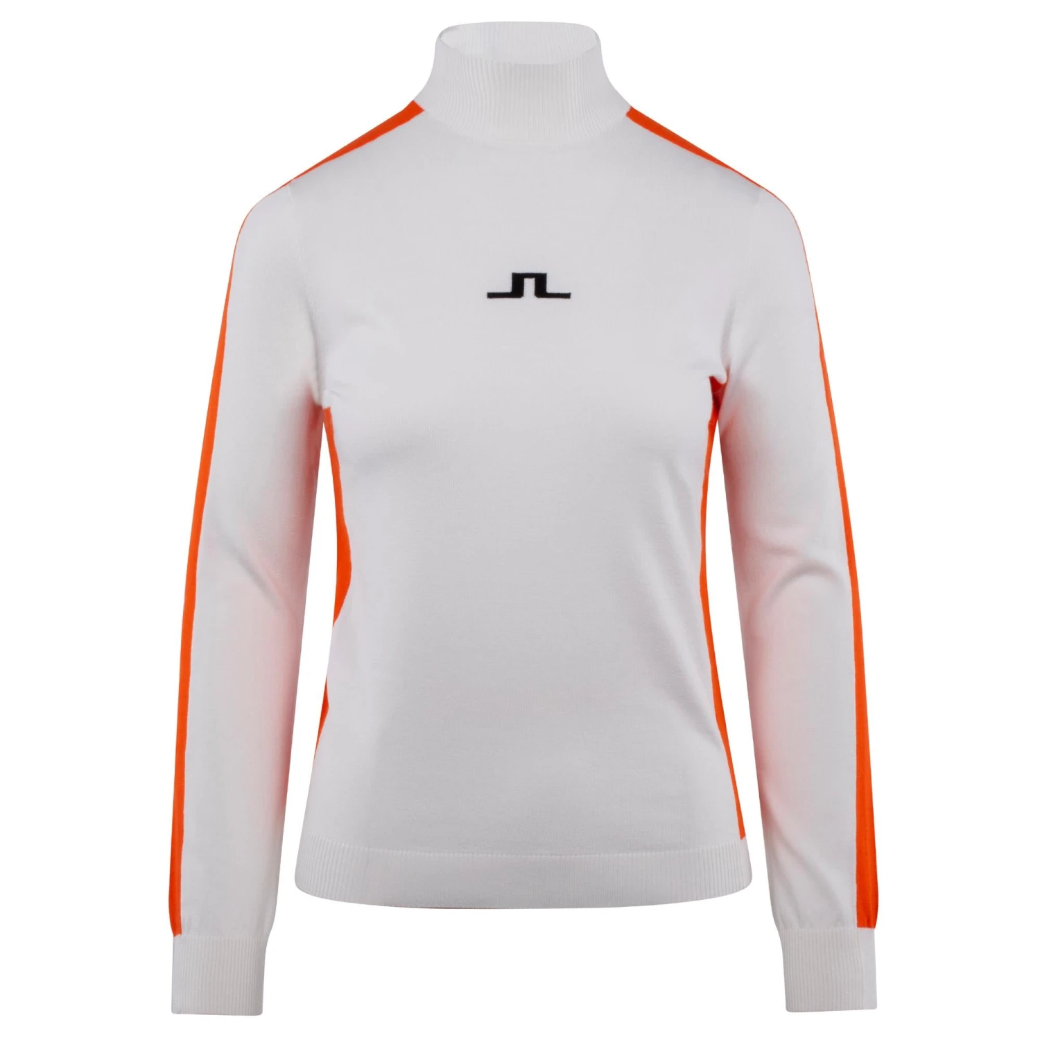 Be prepared for the cooler weather with the J Lindeberg Adia Knitted Sweater. Crafted from 100% merino wool, the Adia features a knitted-in logo at the chest and a stylish contrasting stripe down the arms and sides. Its mock neck and ribbed trims help to make it the ultimate layering piece for this season, perfect to finish off any look both on and off the course.