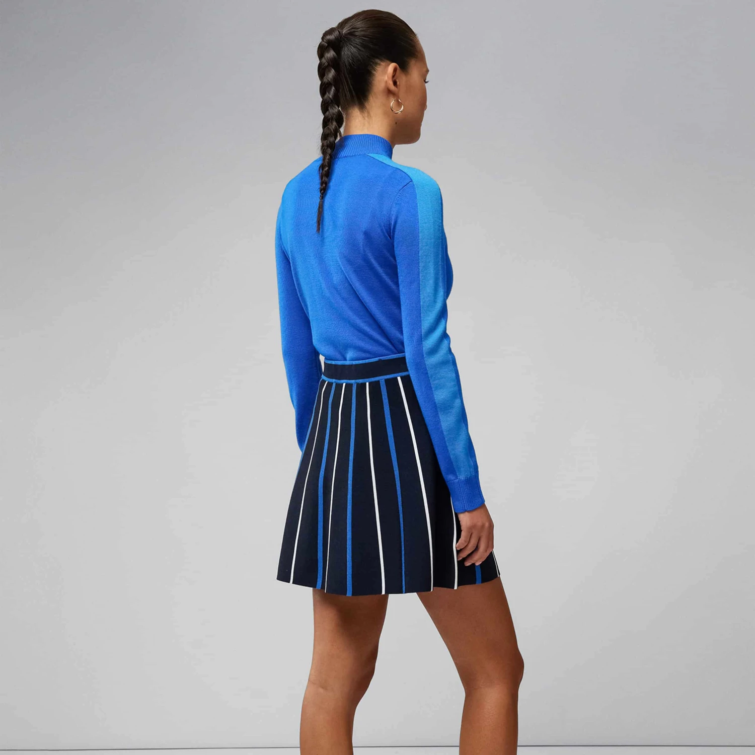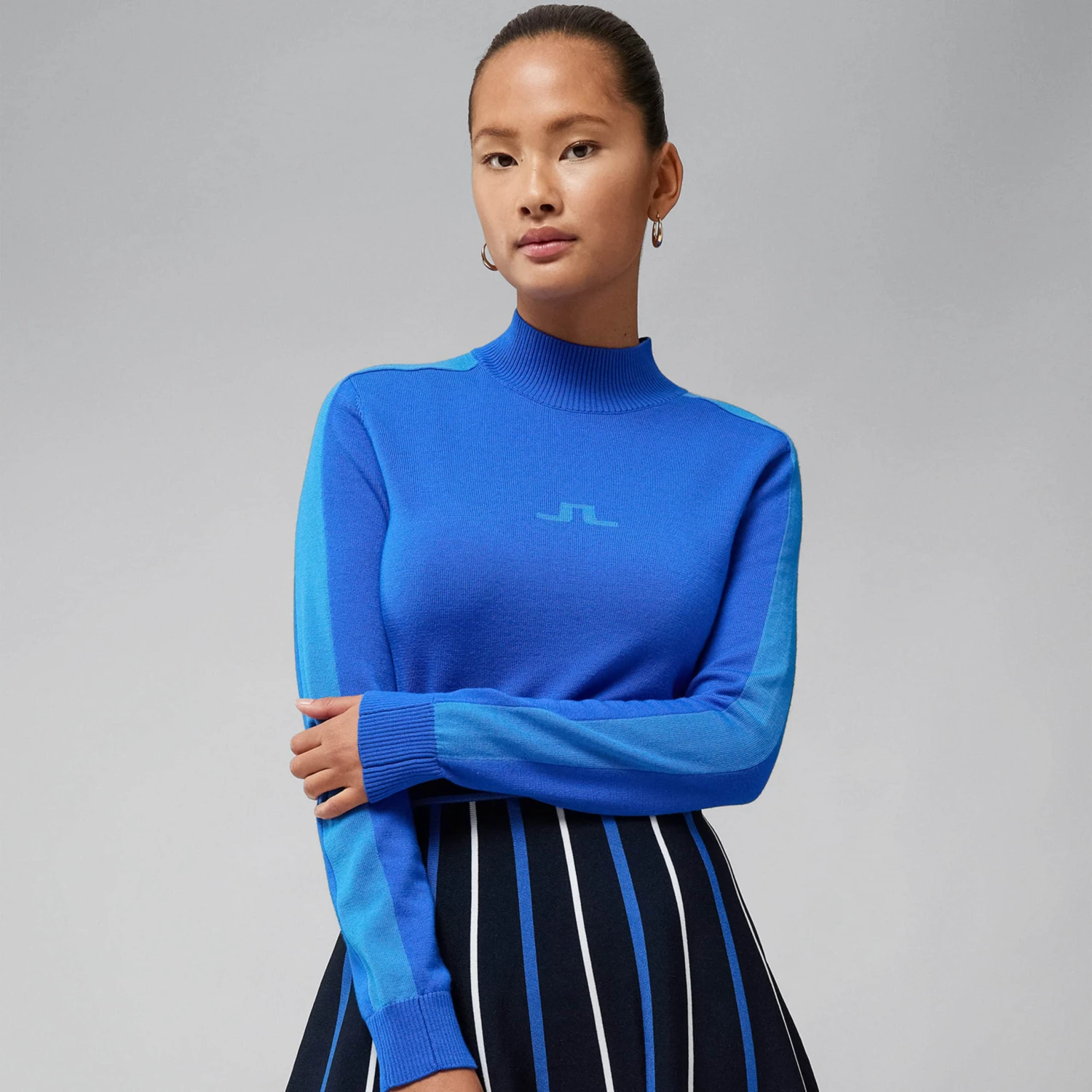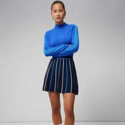 Be prepared for the cooler weather with the J Lindeberg Adia Knittted Sweater. Crafted from 100% merino wool, the Adia features a knitted-in logo at the chest and a stylish contrasting stripe down the arms and sides. Its mock neck and ribbed trims help to make it the ultimate layering piece for this season, perfect to finish off any look both on and off the course.