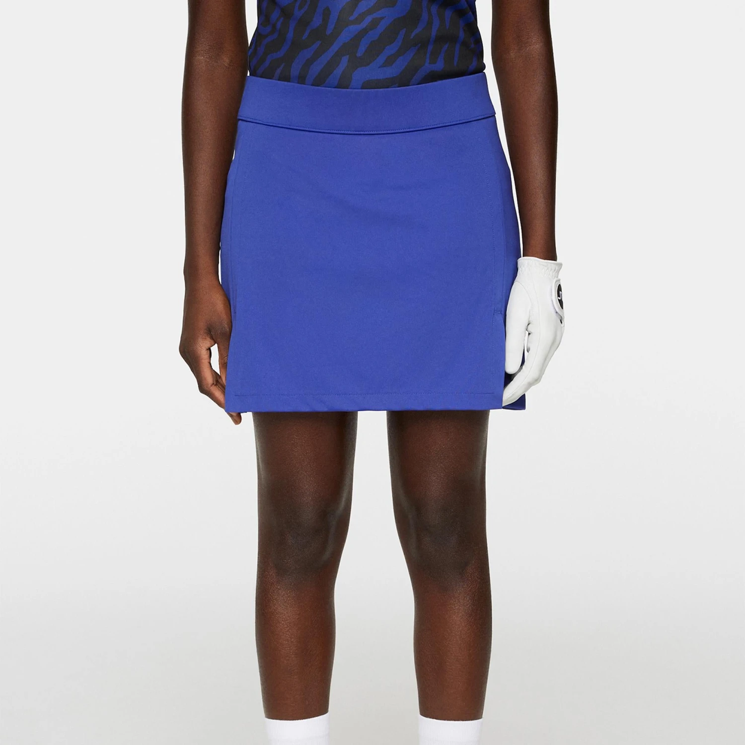 The Amelie skirt is a JL classic and season after season one of our most popular ladies golf skirts. This sporty pull-on skirt is designed to provide optimum comfort on the course with a slightly wider waistband and longer length at the back. Constructed from TX Jersey™, a soft and stretchy fabric, known for its non-iron quality and excellent moisture management, the Amelie has been designed to keep the wearer feeling and playing their best. This style has an elasticated waistband and attached inner shorts, providing utmost comfort whether worn on the course or casually.