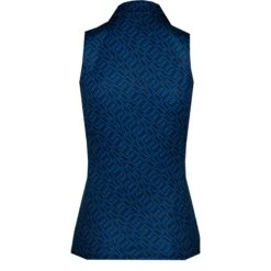 J Lindeberg Dena sleeveless golf top in a striking JL Bridge monogram print , crafted in their best performing TX jersey fabric, , a fast dry, moisture wicking fabric and 4 way stretch, finished with a concealed placket . Fabric is Oekotex certified.
