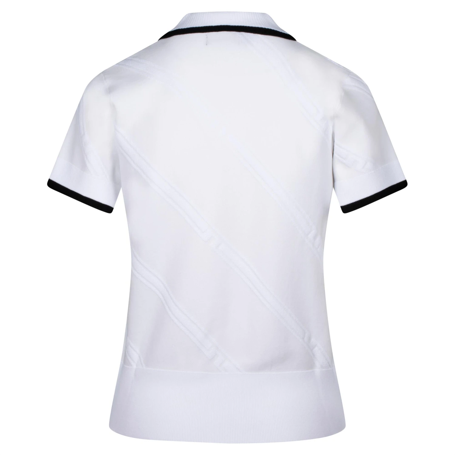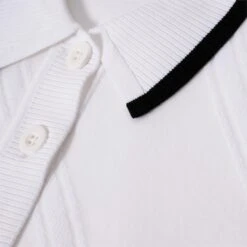 - Ribbed collar with knitted in contrast stripes.