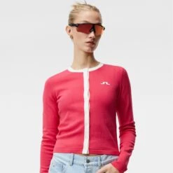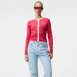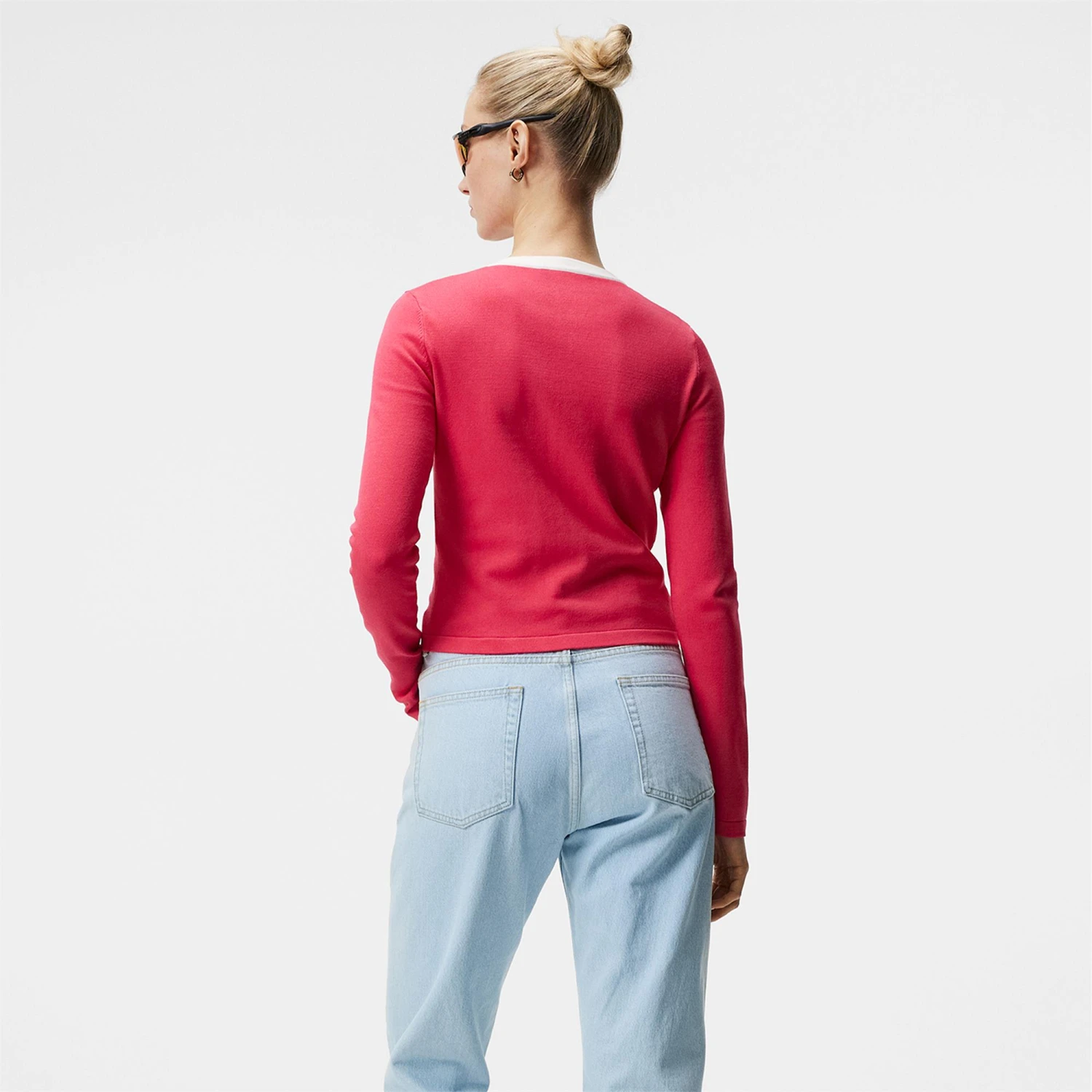 The Freda Knitted Cardigan from J Lindeberg is a great layering piece for spring/summer. Crafted from a Viscose/Polyester Blend in a comfortable double knit, this soft and stretchy cardigan has a slim fit and a contrasting tubular design at the round neck and placket. Proudly finished with the iconic JL bridge logo at the left chest, style Freda with either a skirt or a pair of trousers from our SS23 collection in a colourway that complements the cardigan’s contrasting trims for a stand-out look, sure to make you the envy of your fourball on the fairways this summer!