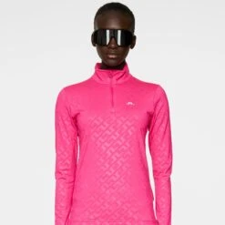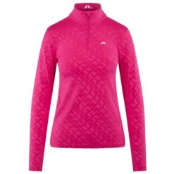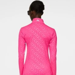 The Lauryn deboss mid layer from J Lindeberg features a half zip and has been crafted from popular light mid fabric, which ensures both warmth and comfort. The Lauryn features a stylish tonal debossed all over print, whilst detailing is elevated by the silicone JL Bridge logo’s which can be found at the left chest and the back neck. The versatile Lauryn is sure to become a go-to layering piece whether worn on or away from the golf course.