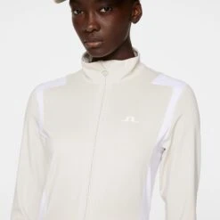 The Mae mid layer from J Lindeberg has been crafted from a soft, lightweight, 4-way stretch material with a brushed inside that ensures not only comfort but also warmth when worn on cooler days. Featuring cut & swen colour blocked panels for a statement look, the Mei also has the iconic JL bride logo at the left chest as well as J Lindeberg at the back neck. The Mei is a versatile full-zip mid layer that is sure to become a go-to all year round.