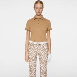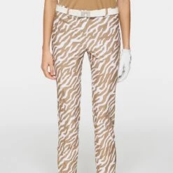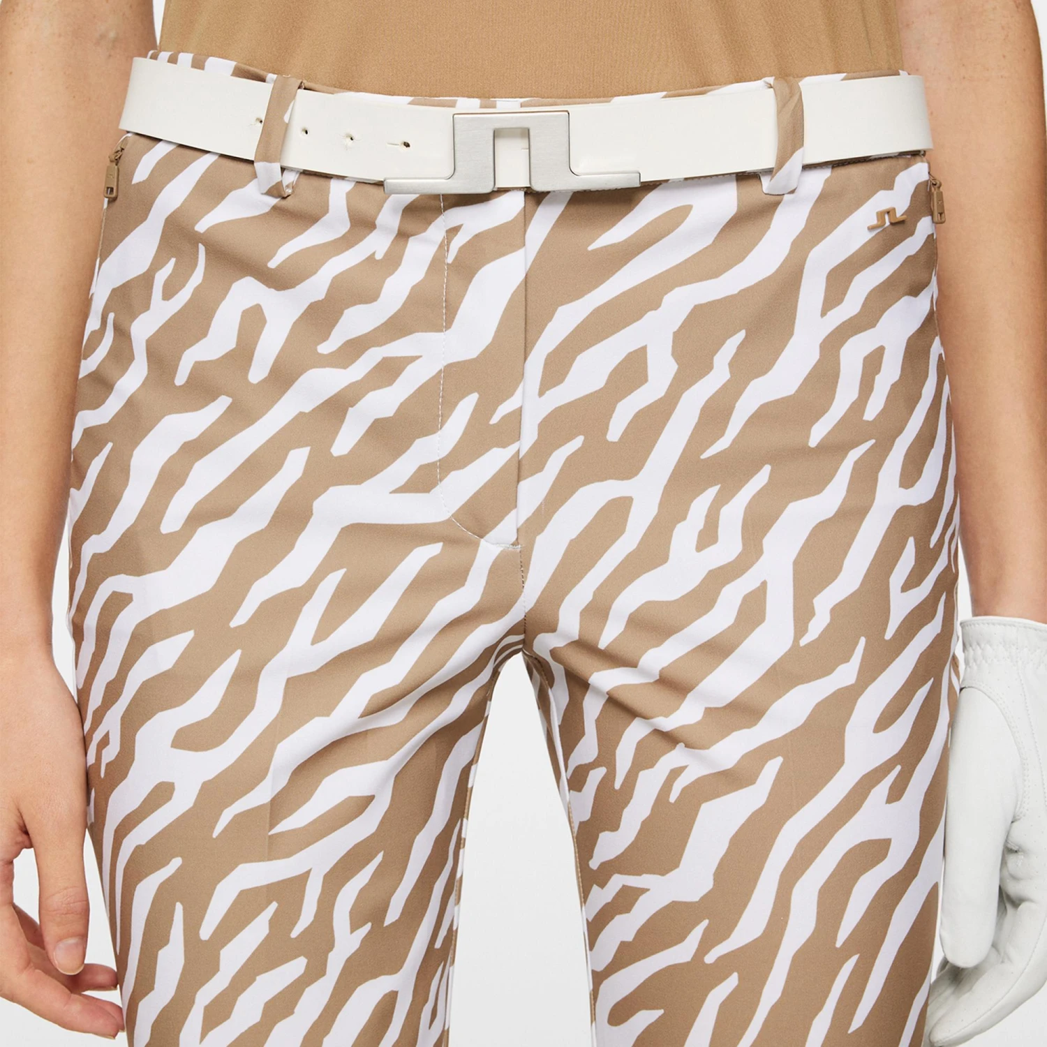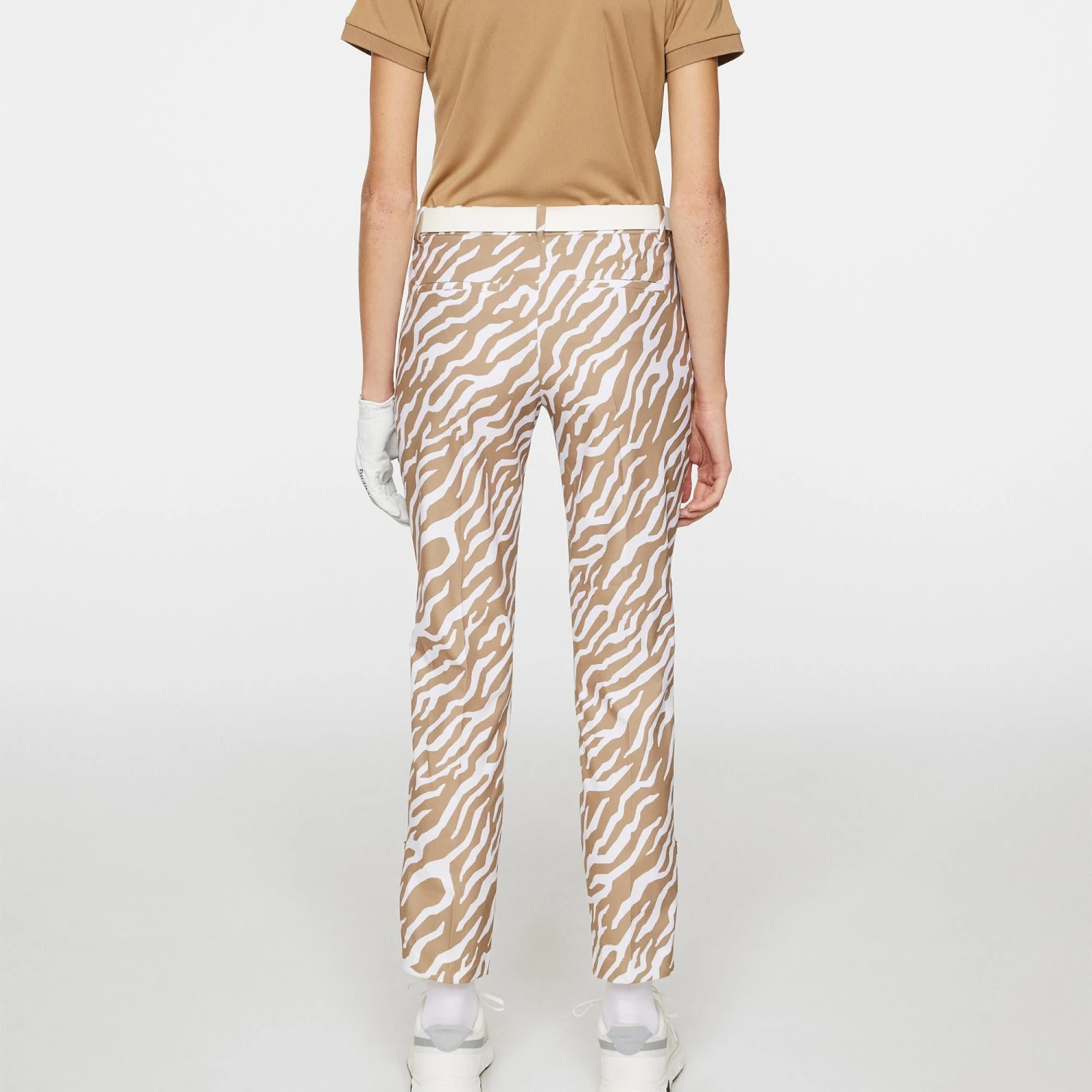 The Pia print pants from J Lindeberg are a sporty high stretch micro twill pant with a mid-rise waistband. Constructed from Micro High Stretch™, a twill structure fabric, the Pia trousers are a lightweight and breathable choice that can be worn time and time again both on and off the course. This highly practical style is also water repellent and features zipped side pockets for carrying your essentials which further enhances their functionality. With an eye-catching all-over seasonal print providing a statement look, the Pia print pants can easily be paired with other elements from this seasons J Lindeberg ladies clothing range to create a look that is sure to turn heads!