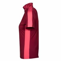The J Lindeberg Pip polo is one of our all time favourites , designed with a feminine high neck rib collar which can be worn buttoned up or down, contrast side panelling across the shoulders and sides and finished with a modern jacquard rib collar with JL bridge artwork