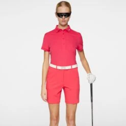 The Tour Tech ladies golf polo is one our best-selling J. Lindeberg polo shirts season after season. Constructed from TX Jersey, a fast dry, moisture wicking fabric with 4-way stretch which guarantees not only comfort, but also freedom of movement when the wearer swings. The Tour Tech also features ribbed collar and cuffs, an embroidered JL bridge logo at the left collar and J. Lindeberg text on the sleeve left sleeve – Subtle detailing which ensures this versatile polo will become a year-round wardrobe staple that can be easily paired with other garments from the J Lindeberg ladies clothing range for a statement look on the fairways!