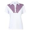 One of our favourites is the icon polo , a modern twist on a sporty polo with a trendy camouflage pattern with skull & Ts emblem and GFORE logo printed throughout , crafted in a fine tech jersey fabric with added stretch for perfect performance , finished with structure collar and a 5 buttoned placket