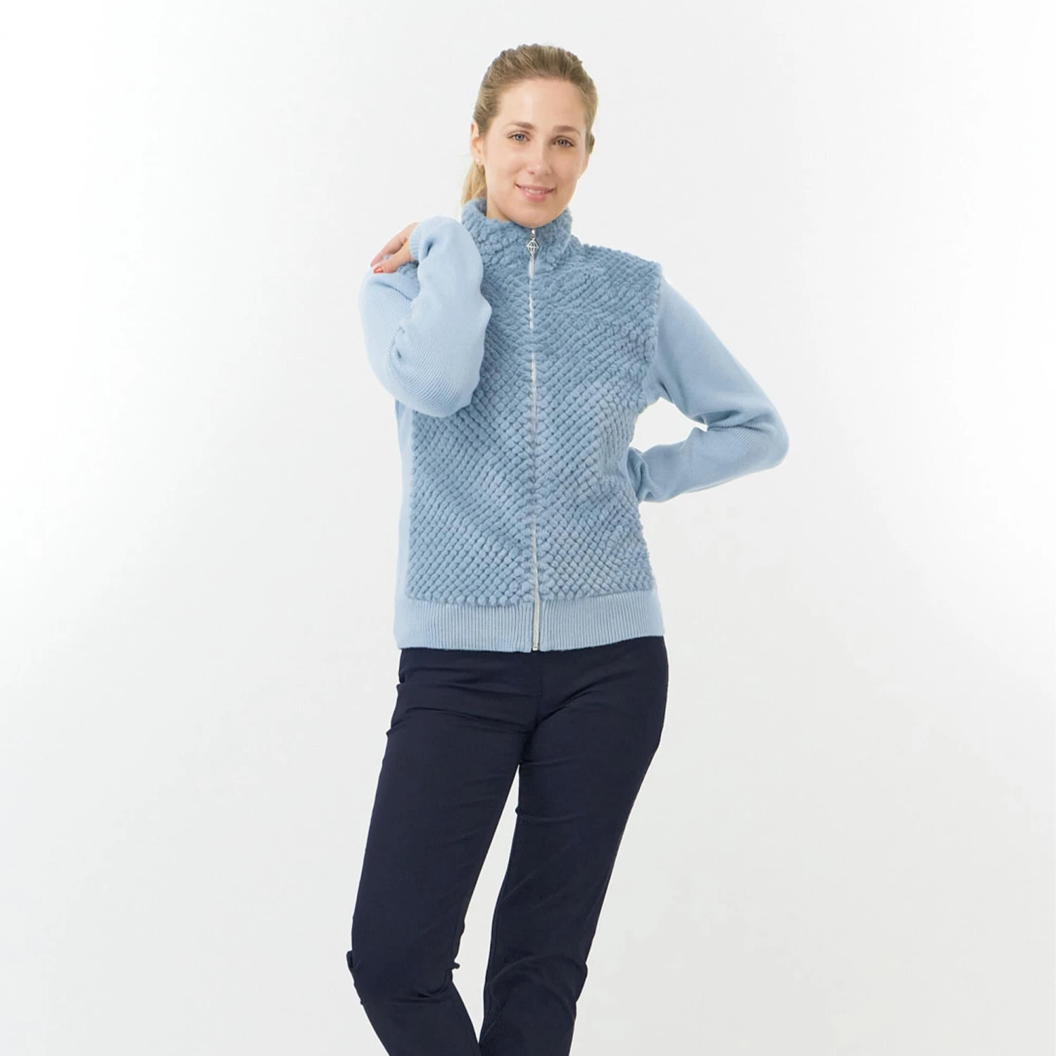 The Ellisa is a soft knitted cardigan from Pure Golf which features a distinctive faux fur front and collar detailing, ensuring premium levels of both style and warmth. Equally at home both on and away from the golf course, the Ellisa is cut in a regular fit and is sure to become a go-to on when temperatures drop this season. With ribbed cuffs & hem further elevating warmth levels, the Ellisa also has a full zip with branded Pure Golf zipper puller to finish the look.
