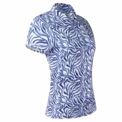 The Pure Golf Rise cap sleeve polo is a versatile full print, cap sleeve zip top made from anti-static, anti-crease, 4 way stretch and quick drying fabric with built in UVA+UVB sun protection with UPF 35 to block harmful rays on the course. The Rise top looks great worn with either plain bottoms or a patterned skort subject to the wearer’s taste and has been specifically designed to integrate seamlessly with the Indigo Jungle collection as well as the white and navy pieces from the Pure Golf spring/summer 23 range.