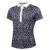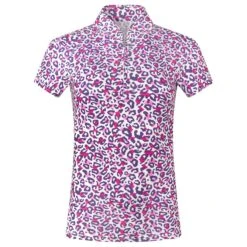 The Pure Golf Rise cap sleeve top is a versatile full print, cap sleeve zip top made from anti-static, anti-crease, 4-way stretch and quick drying fabric with built in UVA+UVB sun protection with UPF 35 to block harmful rays on the course. This top will look great worn with either plain bottoms or a patterned skort subject to the wearer’s taste. It has been specifically designed to integrate seamlessly with the Leo Pop collection as well as other white& azalea pieces from the SS23 Essentials range.