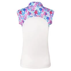 The Spirit sleeveless polo from Pure Golf is a versatile partial print, sleeveless zip top made from anti-static, anti-crease, 4 way stretch and quick drying fabric. Also featuring built in UVA+UVB sun protection with UPF 35 to block harmful rays on the course. The versatile Spirit polo looks great worn with either plain bottoms or a patterned skort subject to the wearer’s taste and has been specifically designed to integrate seamlessly with the Watercolour Daydream range as well as other garments from the spring/summer 23 range.