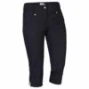 The classic Röhnisch 4-way stretch Chie Comfort ladies golf capri shorts have a classic high waisted fit that is both comfortable and stylish whether worn on or off the golf course. Featuring front pocket design, complete with zip and button fastening the Chie comfort capri is cut in a regular fit with slim legs for a stylish look. This versatile ladies golf capri is sure to become a golfing staple garment this season as they are extremely comfortable to wear and flattering for all sizes. Pair with a polo from this seasons Röhnisch ladies golf clothing collection for a statement look. Made from 86% recycled Polyester – the Chie comfort capri are a sustainable choice