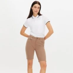 The classic Rohnisch 4-way stretch “Comfort Stretch” material has been brought back by popular demand! The new Chie bermuda has a new classic front pocket design, complete with branded ball marker, zip and button fastening. The high waisted fit is both comfortable and stylish making this versatile knee length bermuda short the perfect addition to your summer golfing wardrobe. Made from 86% Recycled Polyester with a high elastane content which is quick dry and wrinkle free – this is a fully sustainable choice.