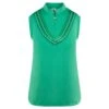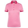 Röhnisch Sophie Blue Utopia Polo in a seasonal watercolour print . The Sophie Poloshirt is made from functional, moisture wicking recycled microfibre material designed to keep you cool and comfortable. The poloshirt has a knitted collar and cuffs with a femine watercolour print detail both front and back. The regular feminine fit is also designed to suit all ladies shapes and makes a stunning stand alone piece or a beautiful outfit when teamed with the matching Kiana Skort.