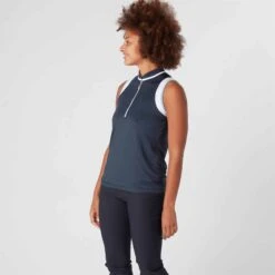 The Alice sleeveless polo is perfect for warmer days on the course. Crafted from 4-way stretch single jersey, this polo is both comfortable as well having breathable & moisture wicking qualities. Featuring a zip at the front with a branded puller adding additional detailing, the Alice is a must-have from the SS23 collection.
