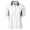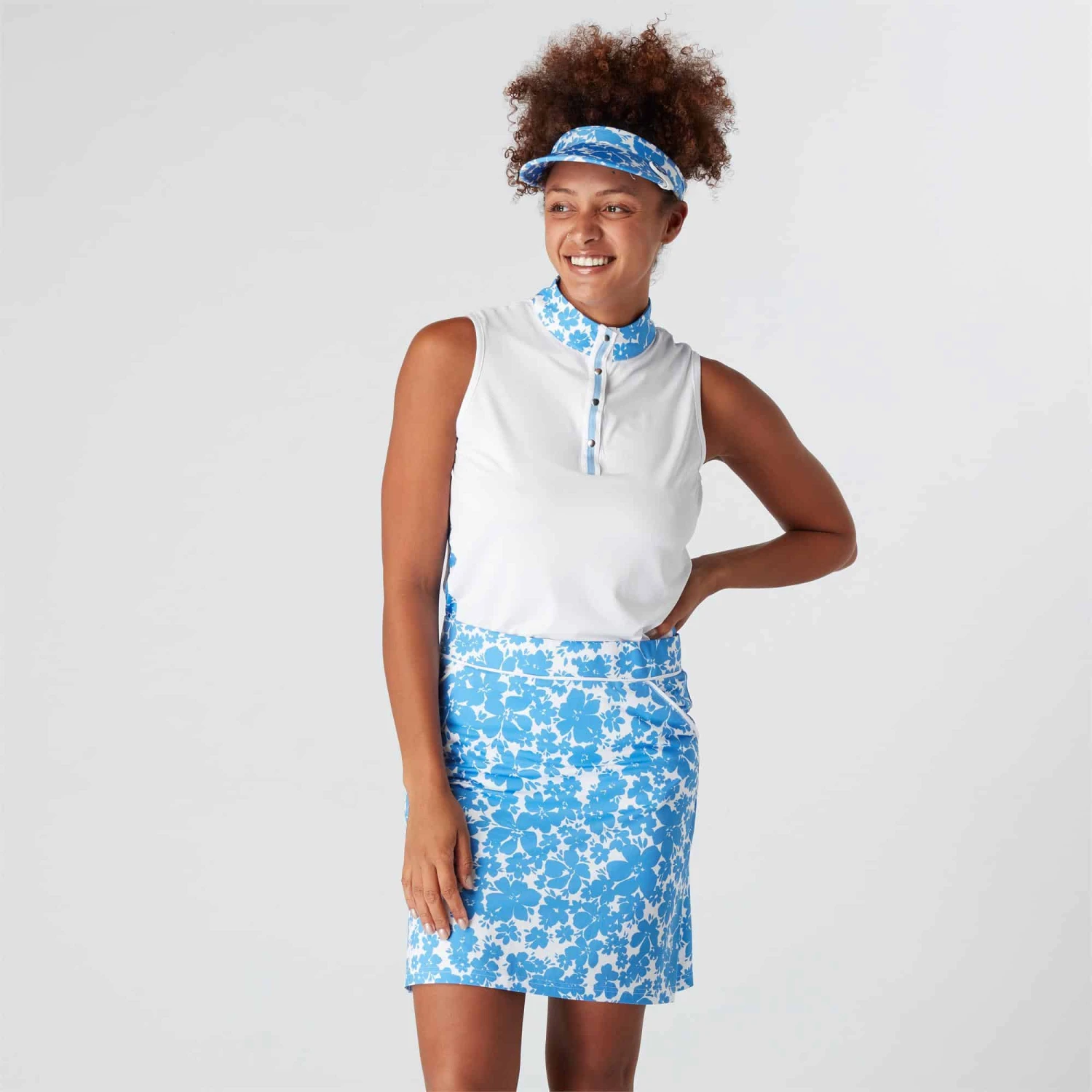 The Clarissa sleeveless polo combines all the qualities required by the serious lady golfer. This stretchy, comfortable, breathable polo offers moisture wicking qualities which further enhance comfort levels as well as SPF protection (+30) from the sun in warmer conditions. The stylish design on the collar gives this polo a signature look, certain to make you turn heads on the course.