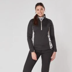 The Maisy mid layer from Swing Out Sister has been constructed in brushed tech jersey fabric which is both warm and has moisture wicking properties, making it the perfect layering piece for this season. The Maisy provides both stretch, soft feel, moisture wicking as well as a cosy fleece lining, ensuring the wearer comfort when worn. The design detail with cuffed sleeve, pattern and piping guarantees eye-catching styling from this stylish mid layer that can be worn alone or as a layering piece depending on the conditions and/or the wearers preference.