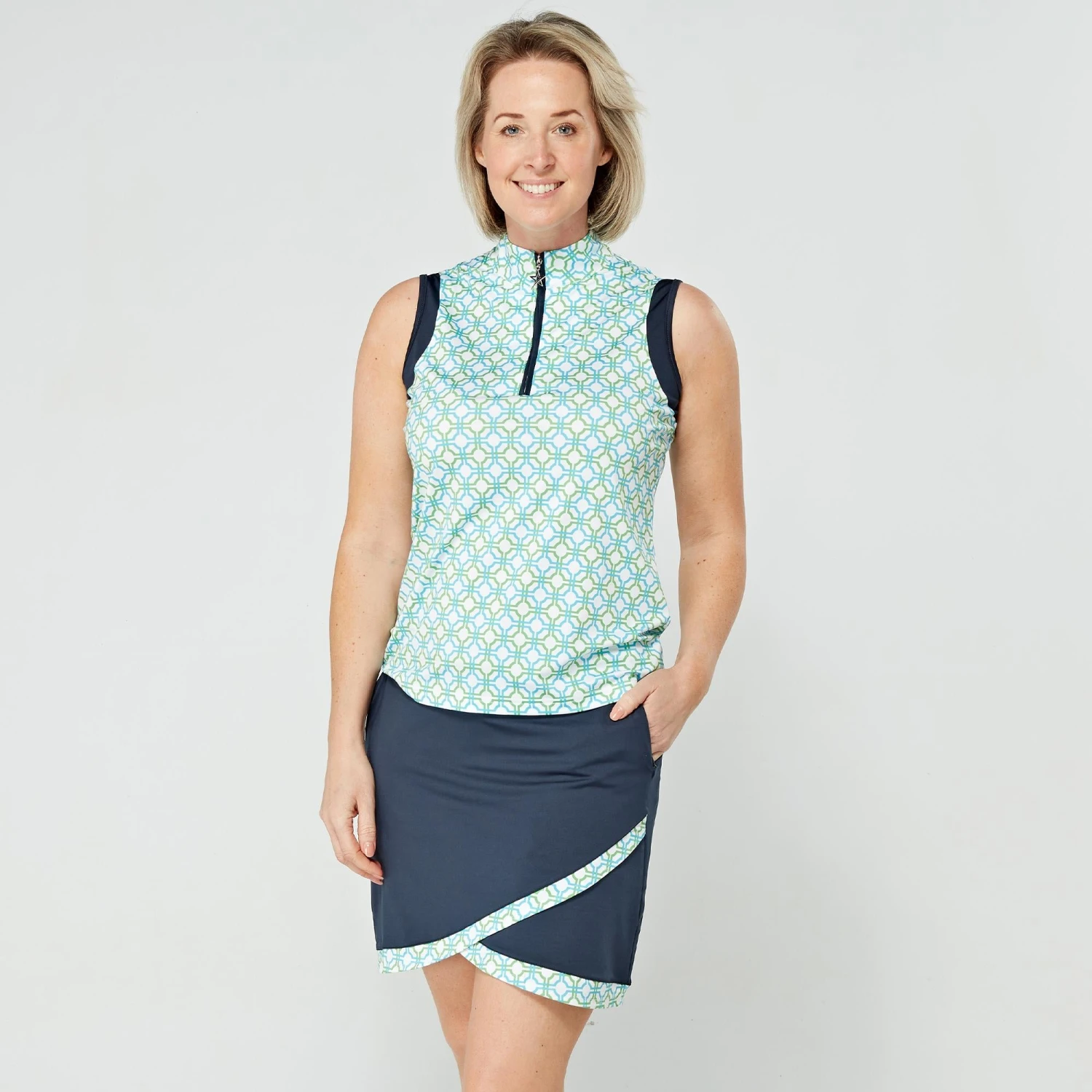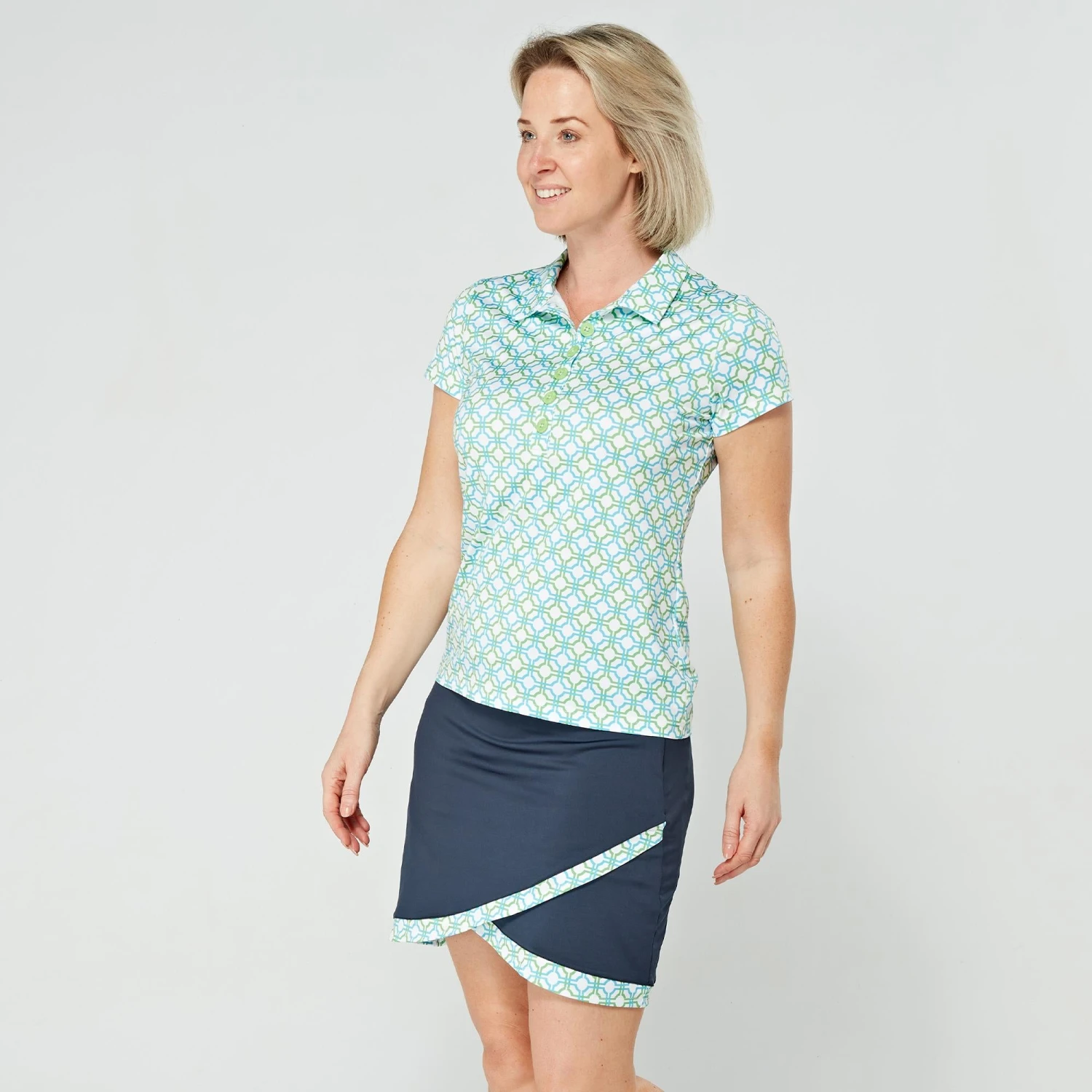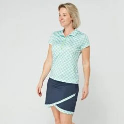 The Milly scalloped skort from Swing Out Sister is a must-have for when the weather is warmer on the course. The Milly has been crafted from breathable, moisture wicking, 4-way stetch material which not only offers SPF protection (30+) but also optimum comfort levels on the fairways, comfort levels that are further enhanced by the built-in modesty shorts. With stylish seasonal print adding a touch of style to the skort, the Milly is sure to become a wardrobe favourite this season, especially when paired with a top from the Dazzling Blue/Emerald collection.