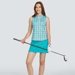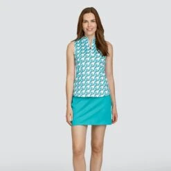 From the Tail Golf AW23 collection, the Freda sleeveless mini mock ladies golf top is a versatile ladies top that will quickly become a must have both on and away from the golf course. Soak up the sun in a variety of silhouettes with sun protective fabric that keeps you safe, whilst remaining stylish & comfortable. The fabric also features built-in UPF 50+ that keeps 98% of UVA and UVB rays at bay, so you can step out of the shade feeling great and looking beautiful. Pair the Freda with a matching skort or with shorts in order to elevate your look and guarantee an eye-catching look on the fairways this season!