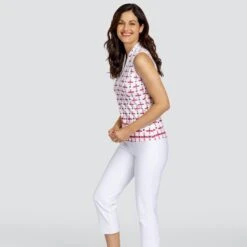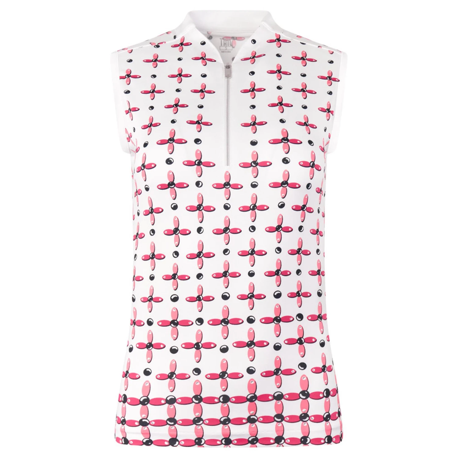 From the Tail Golf SS23 collection the Mea sleeveless polo is a versatile ladies golf top that will finish off most on-course looks this summer. The Mea will enable the wearer to soak up the sun in a variety of silhouettes with sun protective fabric that keeps you safe, whilst remaining both stylish & comfortable. The fabric also features built-in UPF 50+ that keeps 98% of UVA and UVB rays at bay, so you can step out of the shade feeling great and looking beautiful. Pair the Mea with a Kenny skort from the Clover Petals collection for an eye-catching look, equally at home both on and off the course.