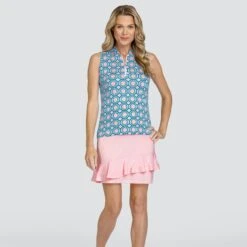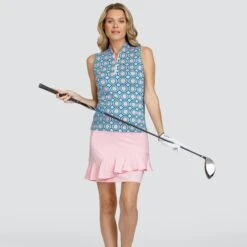 From the Tail Golf SS23 collection the Mea sleeveless polo is a versatile ladies golf top that will finish off most on-course looks this summer. The Mea will enable the wearer to soak up the sun in a variety of silhouettes with sun protective fabric that keeps you safe, whilst remaining both stylish & comfortable. The fabric also features built-in UPF 50+ that keeps 98% of UVA and UVB rays at bay, so you can step out of the shade feeling great and looking beautiful. Pair the Mea with either a Cass or Feliciana skort for an eye-catching look, equally at home both on and off the course.