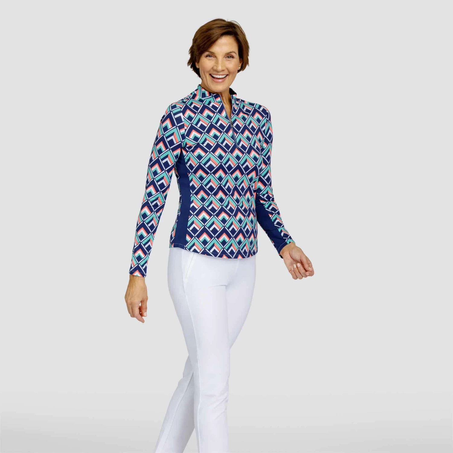 From the Tail Golf SS23 collection, the Wai midlayer enables you to soak up the sun in a variety of silhouettes with sun protective fabric that keeps you safe. The comfortable, protective fabric features built-in UPF 50+ that keeps 98% of UVA and UVB rays at bay, so you can step out of the shade feeling great and looking beautiful. The versatile Wai is perfect for both on and off the course when conditions are a little cooler. Pair the Wai with the Santi skort from the Gem Geo range for an eye-catching look for the summer!